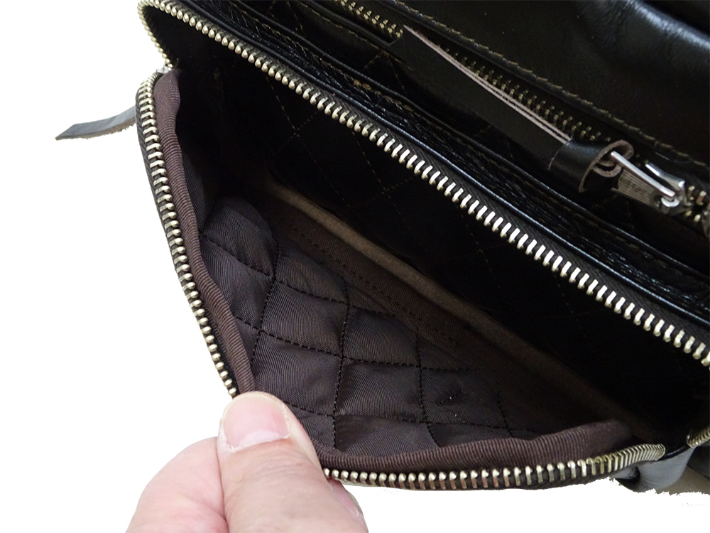 フロントパネル全面にも大型のダイヤモンド型キルティングパッドを施し、