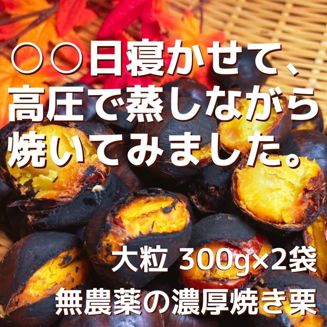 ○○日寝かせて、高圧で蒸し焼きにした無農薬のこだわり濃厚焼き栗 大粒 300gx2袋 返金保証付 茨城県産 農家直送 クール便 ギフト 贈答に