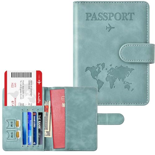 [Hueapion] パスポートケース スキミング防止 パスポートカバー 多機能収納ポケット パスポート カードケース ラベルウォレット 高級PUレザー 軽量
