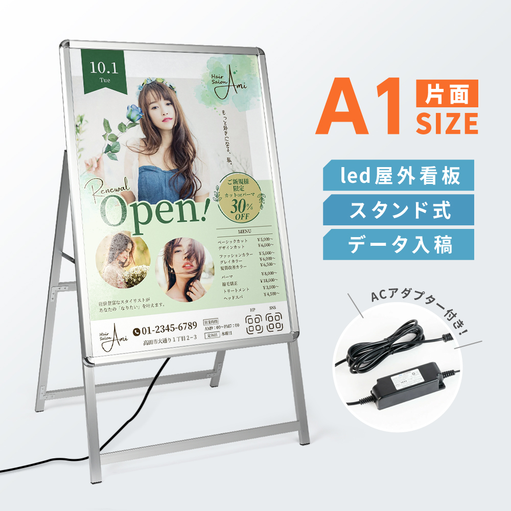 \爆買/A1サイズ片面 LED看板 A型パネル看板 シルバー 約W640mm×H1225mm 立て看板 スタンド看板 A看板 店舗用看板 屋外看板 alp-a1s-sv-gt