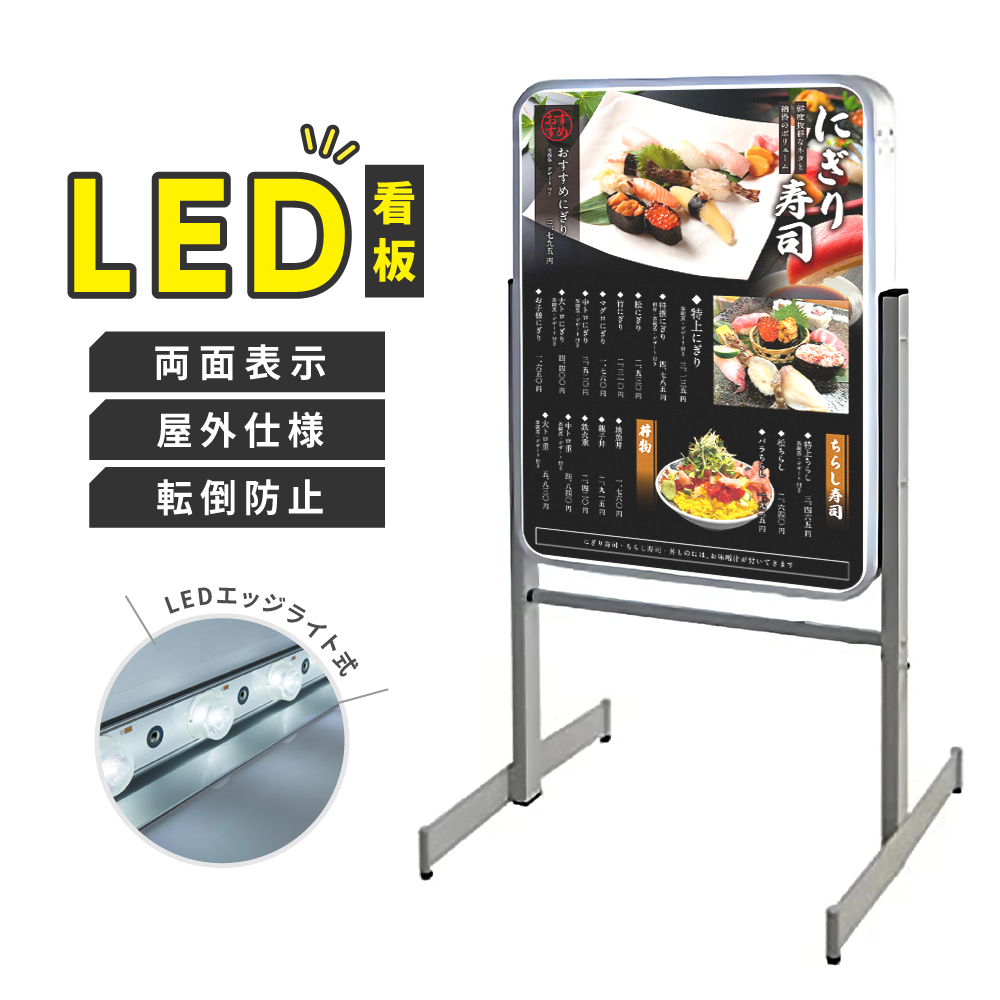 両面LED看板 店舗用看板 LED照明入り看板 W450mm×H950mm 電飾スタンド看板 小型 LEDエッジライト式 看板 スタンドサイン gsr50-950