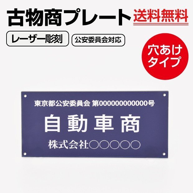 古物商 許可プレート アクリル製 W160×H80mm 紺色 レーザー彫刻 古物商プレート 警察 公安委員会指定 l-curio-navy-hole