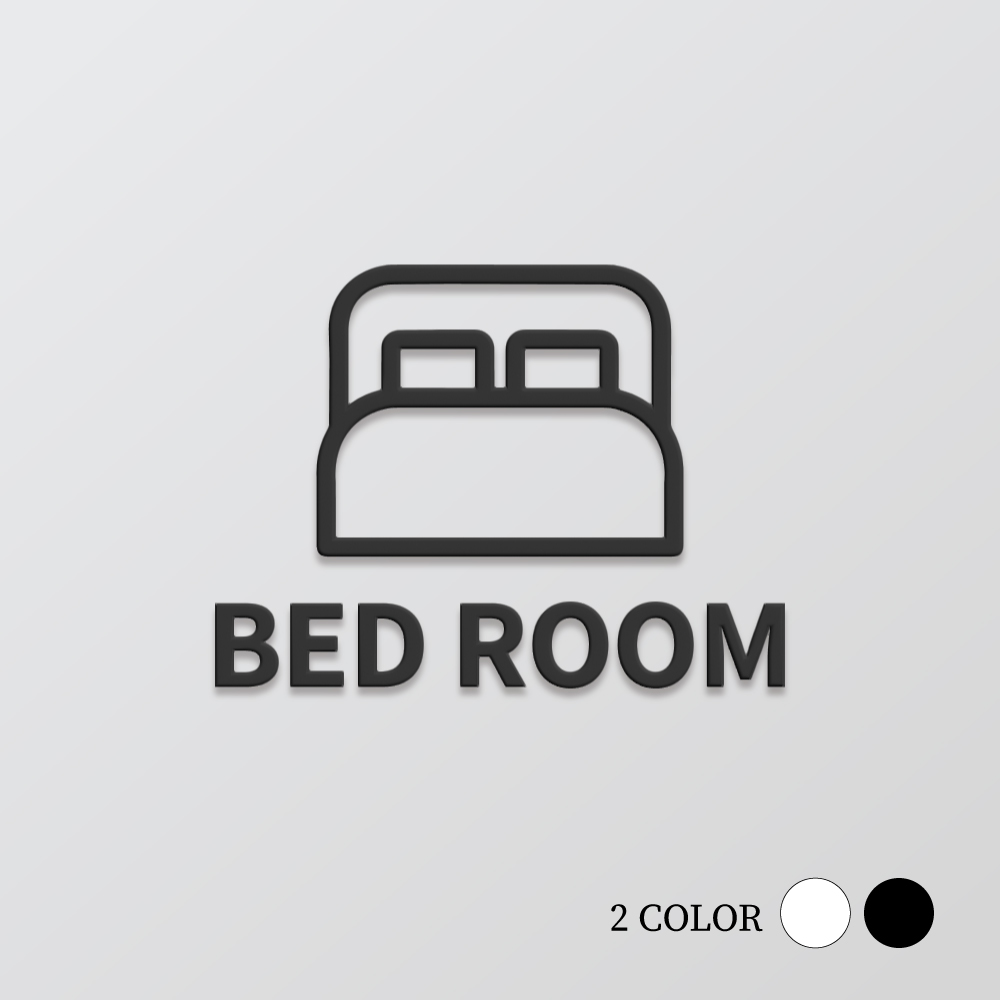 【BED ROOM】アクリル製 案内ドアプレート ブラック/ホワイト 雑貨洗面所 ドアトイレ誘導 ピクトグラム オフィス備品 picsgn-l-49