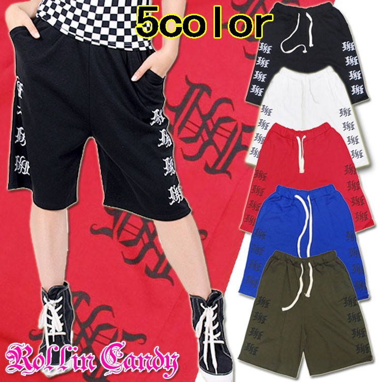 文字プリントスウェットハーフパンツ ダンス衣装 レッスン着 フィットネス ジム ヒップホップ ダボパン キッズダンサー B系 レディース 大きいサイズ ボトムス