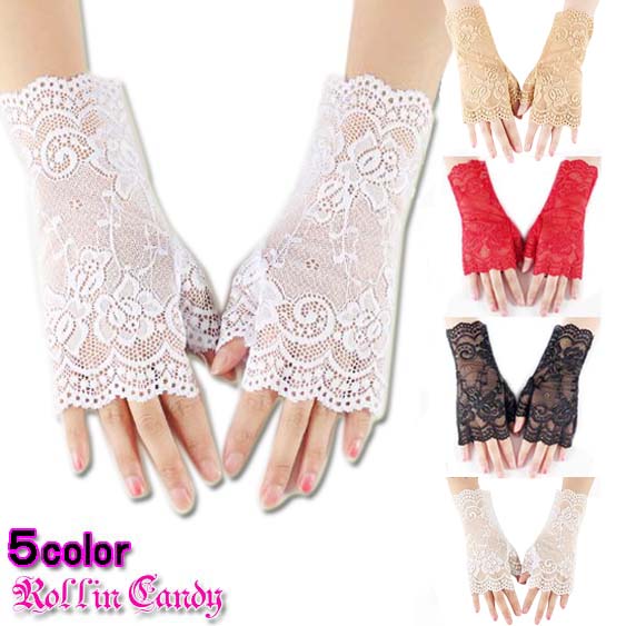 レース フィンガーレス グローブ/手袋 ショートグローブ フォーマル ウェディング パーティー 結婚式 ステージ 衣装 ダンス 衣装 レディース 黒 白 赤 ベージュ