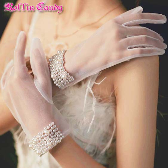 ●パール付き シースルーメッシュ ショートグローブ(両手セット)
