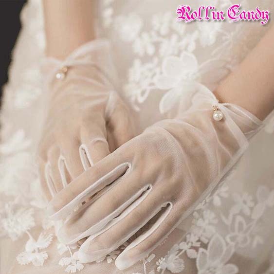 ●パールチャーム付き シースルーメッシュ ショートグローブ(両手セット)
