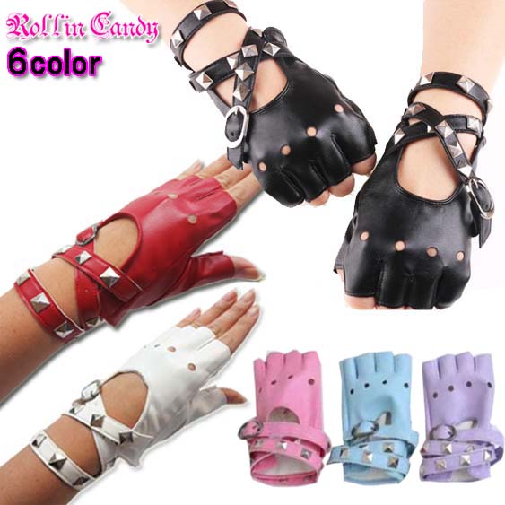 フィンガーレスタイプのスタッズ&ベルト付き合皮グローブ☆