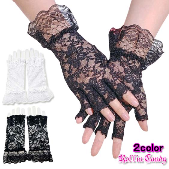 ●フリル付き レース フィンガーレスグローブ/ショートグローブ(両手セット)