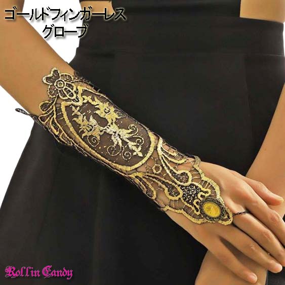 ストーン付き ワンフィンガー 編み上げ グローブ(1個) 黒 ゴールド ループ付き ウェディング ダンス 衣装 衣裳 レディース 手袋 アクセサリー アームカバー