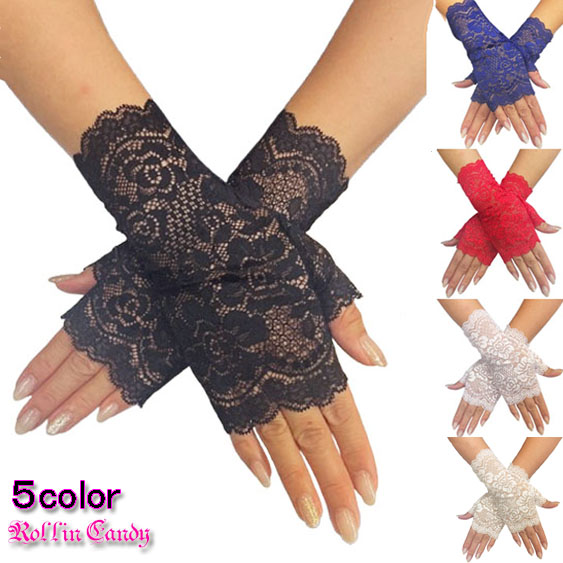 レース フィンガーレス グローブ/手袋 ショートグローブ フォーマル ウェディング パーティー 結婚式 ステージ 衣装 ダンス 衣装 レディース 黒 白 赤 青