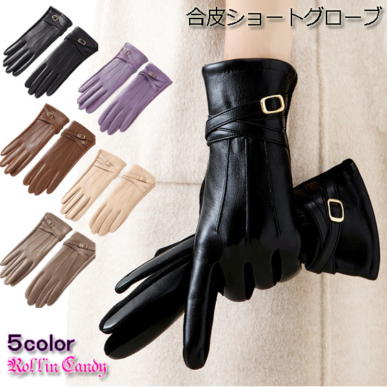 合皮 ショートグローブ 手袋 PUレザー フェイクレザー タッチパネル対応 裏ボア 防寒 エレガント レディース 通勤通学 パーティー