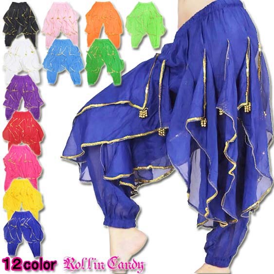ダンス衣装・ステージ衣装に!ビーズ付き シフォンパンツ/サルエルパンツ/ハーレムパンツ/アラジンパンツ ベリーダンス 舞台衣装 アラビアンダンス レディース