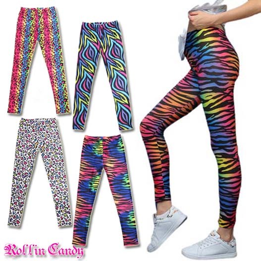 超ストレッチ!総柄 レギンス/スパッツ (A-D) ダンス 衣装 レギパン 派手 派手レギンス カラフル レインボー ヒップホップ レッスンパンツ レディース キッズ