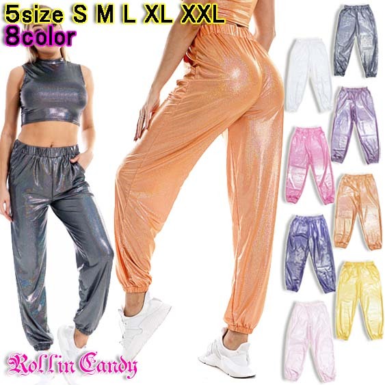 ダンス衣装・ステージ衣装に!メタリック ラメドット ロングパンツ/ダボパン 男女兼用 ヒップホップ キラキラ メンズ レディース 衣裳 セットアップ可能