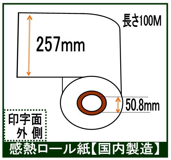 FAX用紙 257x2x100 B4 幅257mm 100M巻き 芯径2インチ 感熱 業務用6本入り