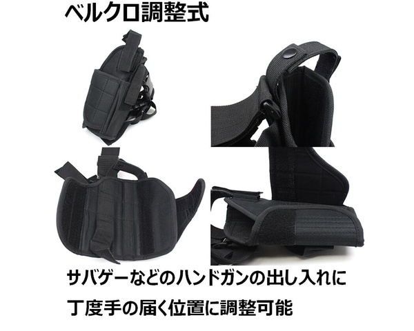男女兼用 ベルクロ 調整式 レッグホルスター【 右足用 ブラック 】ガンホルダー ハンドガン サバゲー コスプレ にも