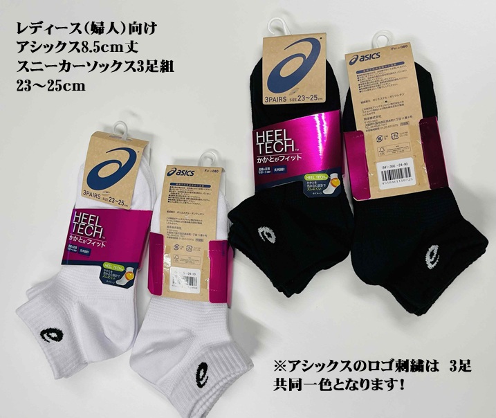 レディース(婦人)アシックス 3足組 ソックス 8.5cm丈