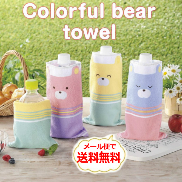 1000円ポッキリ 2点セット カラフルくまタオル ペットボトルケース タオルケース タオルポケット ボトルホルダー ペットボトルホルダー ハンドタオル 水滴防止