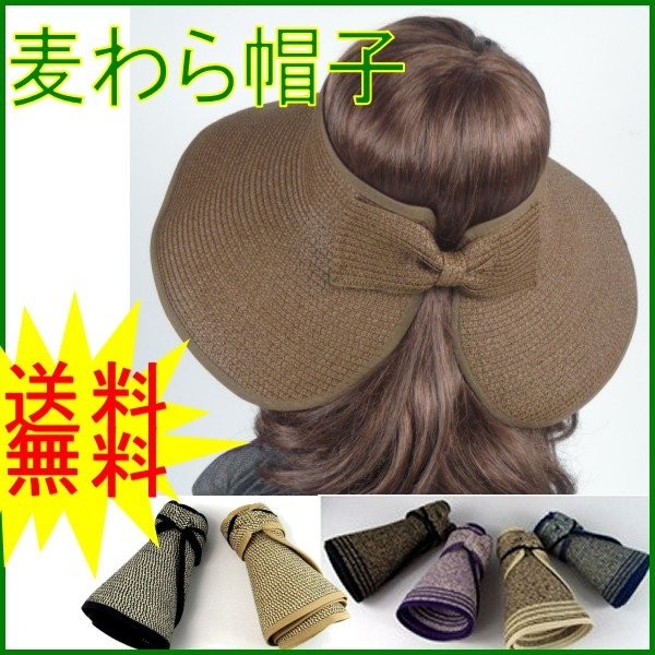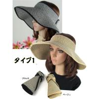 麦わら帽子 折りたためるサンバイザー リボン付き帽子 つば広サンバイザー レディース UVカット 紫外線防止