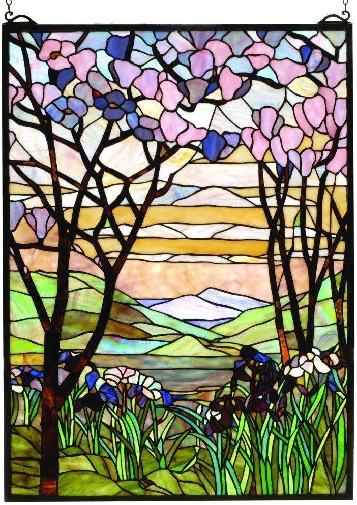【Meyda Tiffany 98589 Tiffany Magnolia & Iris Stained Glass Window, 22" W x 30" H】