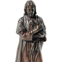 【イエス・キリストと子羊の像 ブロンズ風 置物 彫像 彫刻 高さ約16cm カトリック 教会 祭壇 洗礼 プレゼント(輸入品)】