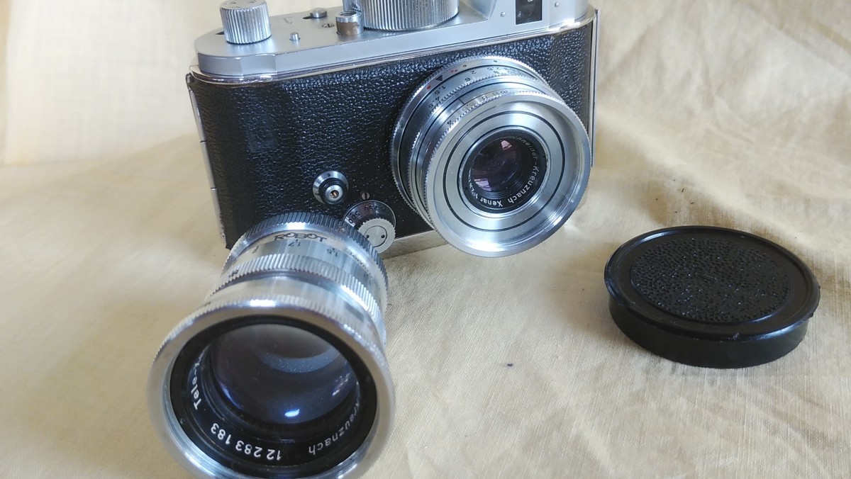 約18年前に東京のカメラ専門店でロボット24と合わせ高額で求めました。小振りなロボットIIです。ゼンマイを巻いて連写が出来ます。状態は写真からご判断下さい。古い割には綺麗な方かと思います。レンズ二本がセットです。背面にはROBOT Germanyの刻印 内部にはB 95304 のシリアルナンバー レンズはシュナイダー クセナーF2.8/38mm 及びシュナイダー テレクセナーF3.8/75mm(多少の曇り有り)です。ご不明な点がございましたらお問い合わせください。。