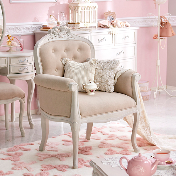 | グレイッシュなホワイトのフレームにアンティーク加工を施した、クラシカルな佇まいのソファー。大きなリボンモチーフがステキなアクセント♪座面にスプリングを使用しているので、座り心地もグッド。背もたれはナチュラルな風合いの生地をボタンキルトで仕上げた、高級感のあるデザインです。 ※このページはクラシカルソファ(1人用)のみの販売です。 |