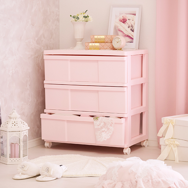 | 優しいパステルピンクがかわいい3段チェスト!幅60cmタイプでワイドな収納力。クローゼット、玄関など様々な場所で活躍するキャスター付きの3段収納ケース。かわいいインテリアに馴染む、ピンクをご用意しました。キャスターはホワイトカラーで本体カラーに優しく馴染みます。天板はフラットなので、仮置きスペースとして使用できます。また360度回転キャスター付きで移動も簡単。 ※商品は「組立式」となります。 |