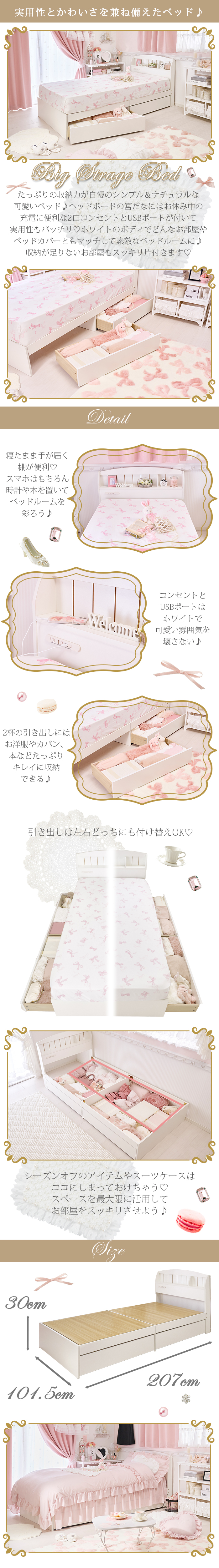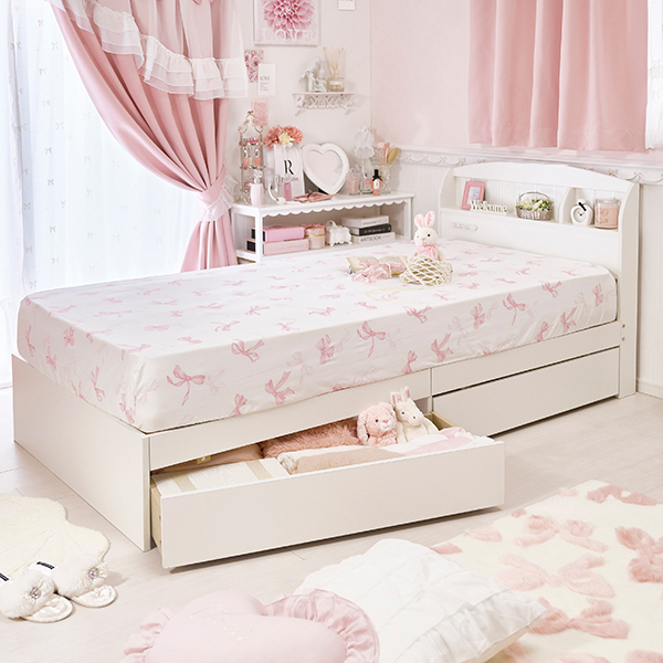 1人暮らしにオススメ!可愛いのに、たっぷり収納も叶うマットレス付きベッド♪ |