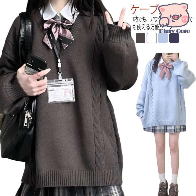 スクールセーター Vネック レディース vネックセーター ニット 可愛い ケーブル編み セーター 通勤 通学 学生 高校生 スクールニット