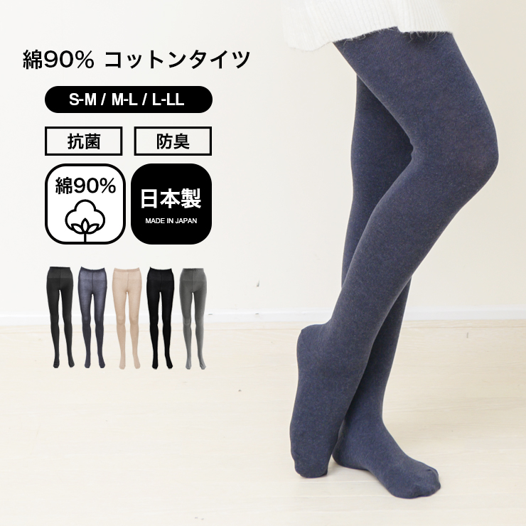 日本製 綿90% レディース タイツ コットンタイツ 綿タイツ シンプル 無地 黒 ブラック 抗菌 防臭 綿 毛玉になりにくい マチ付き ゆったり あたたかい t04