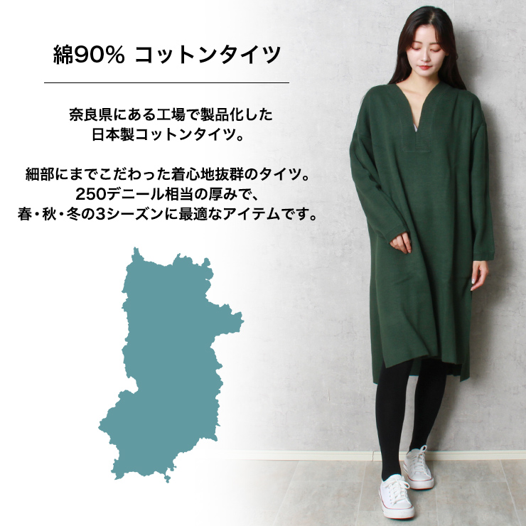 奈良県にある工場で製品化した日本製コットンタイツ。