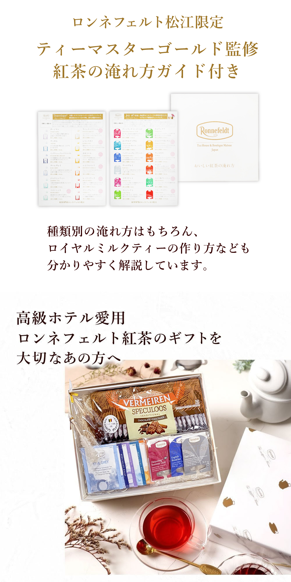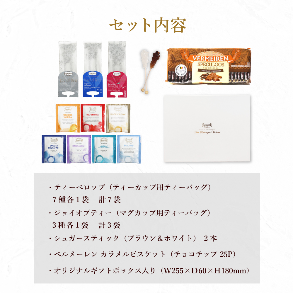 ベルギーの老舗ビスケット専門メーカー「ベルメーレン社」のチョコビスケットと、ロンネフェルトの紅茶が入ったセットです。