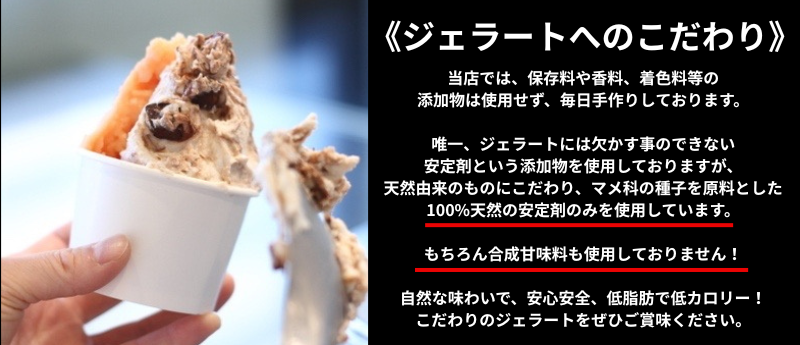 唯一アイスクリームには欠かす事のできない安定剤という添加物を使用しておりますが、天然由来の物にこだわり