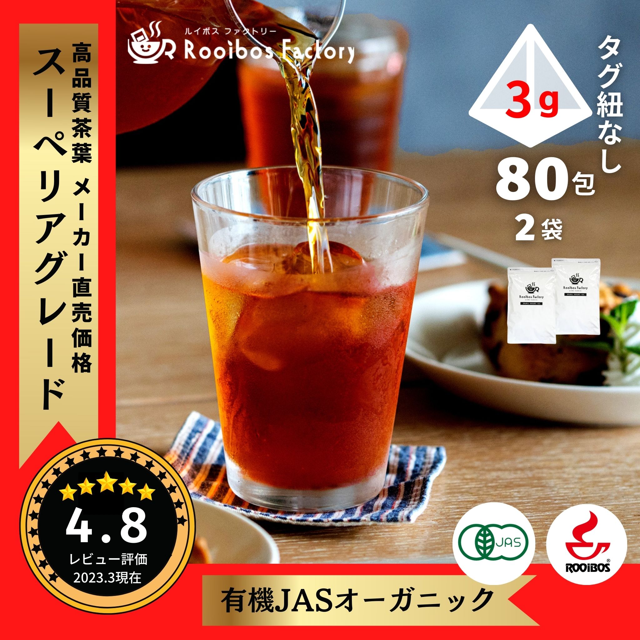 ルイボスティー オーガニック ルイボス 3g×80包×2袋 タグ紐無し ルイボスティ オーガニックルイボスティー 爆買