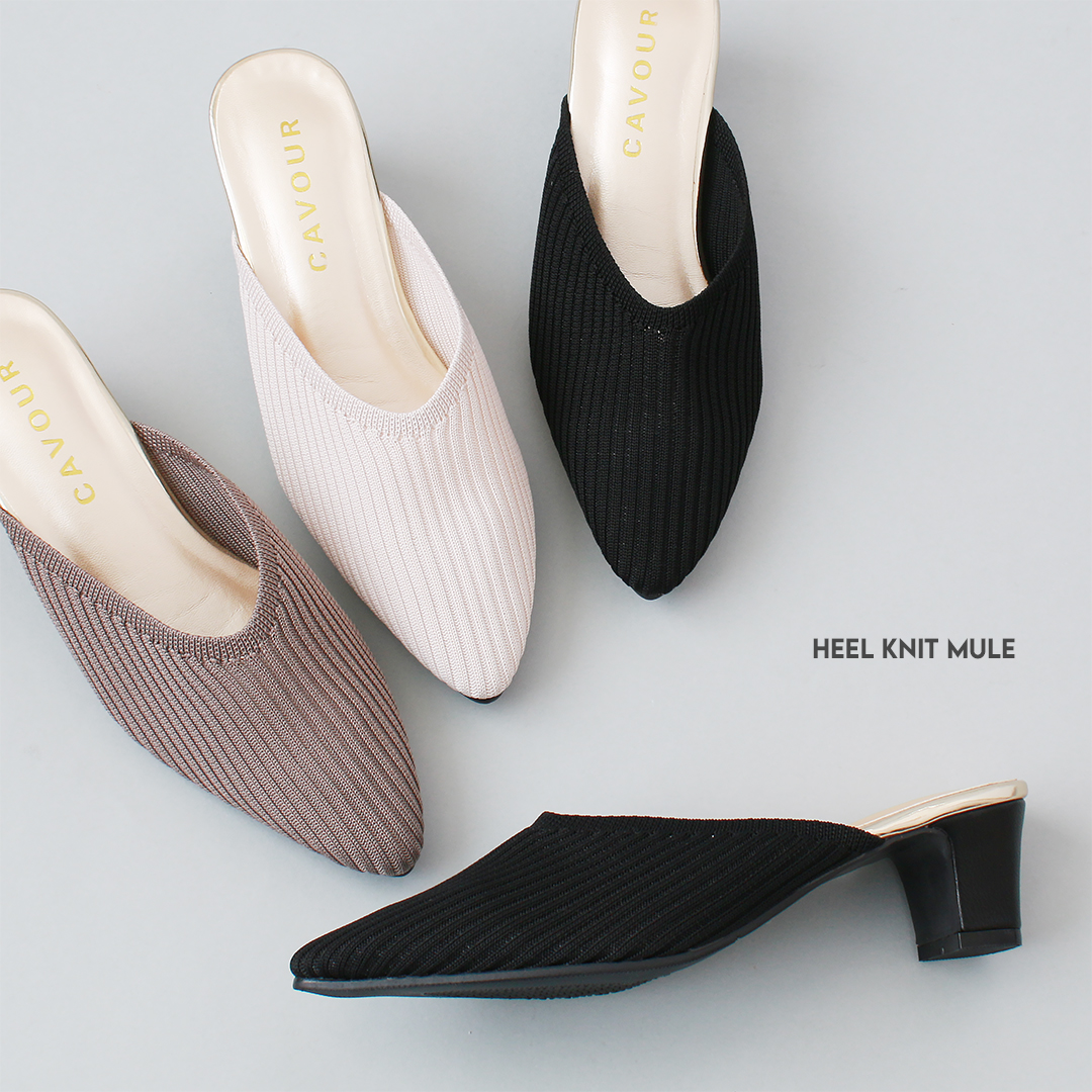 ニット ミュール サンダル ヒール レディース ポインテッドトゥ つっかけ 歩きやすい エレガント きれいめ オフィス フォーマル ml-4585