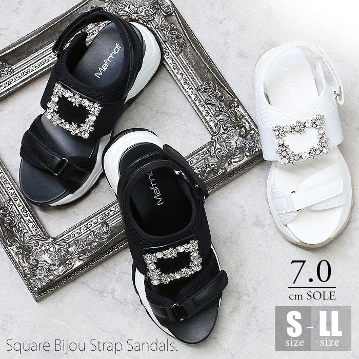 サンダル レディース 厚底 5cm スポーツサンダル 夏 靴 くつ 歩きやすい ストラップ ビジュー 黒 ブラック 白 ホワイト お出かけ 旅行 キラキラ 可愛い おしゃれ 痛くない 40代 50代