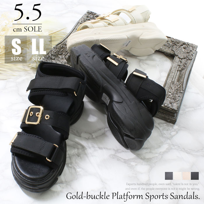 ゴールドバックル 厚底 スポーツサンダル ダッドサンダル レディース 夏 歩きやすい ストラップ mt-7486