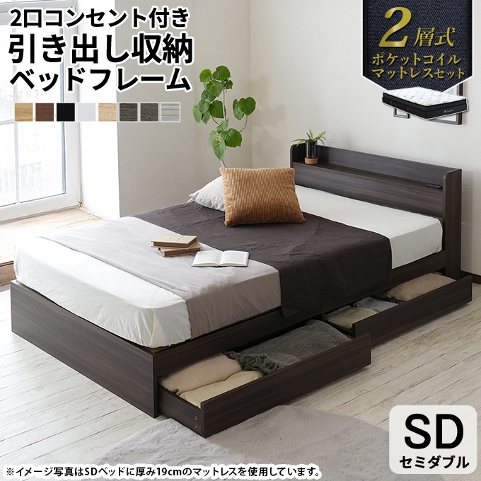 ベッド ベッドフレーム 収納 マットレス マット付き 引出し 2層式 セミダブル SD セミダブルベッド セミダブルサイズ