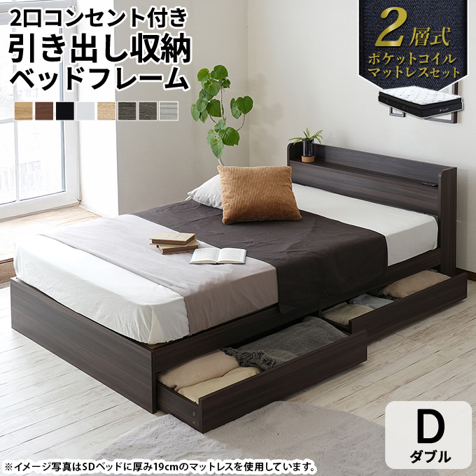ベッド ベッドフレーム マットレスセット エミー 収納ベッド アンサンブル ポケットコイル ダブル D ダブルベッド マットレス付き ブラウン ナチュラル ホワイト ブラック 2層式 セパレート 人気 シンプル Dサイズ ダブルサイズ 収納 引き出し 引出し ヘッドボード 棚 宮 マット付き ウレタン 親子 夫婦 家族 ファミリー 大き目 幅120 2人