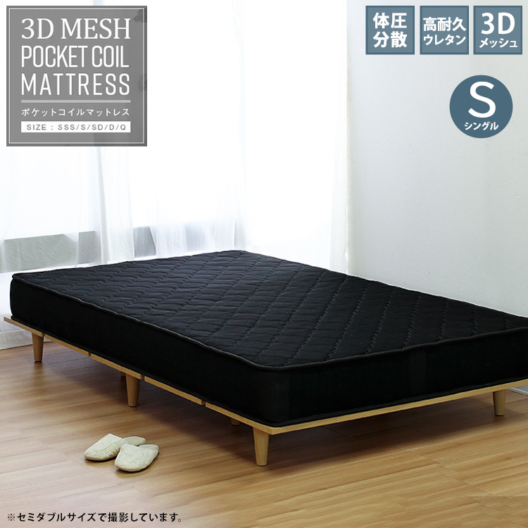 マットレスのみ 単品 3Dメッシュマットレス ポケットコイル S マットレス シングル マット 厚み17cm ブラック マットレス