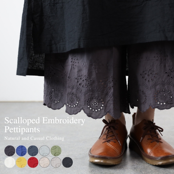 ペチパンツ ペチコート ロング 綿 コットン 裾レース スカラップ インナーパンツ ウエストゴム ワンピースの下 8分丈 春 夏 ナチュラル 30代 40代 メール便可