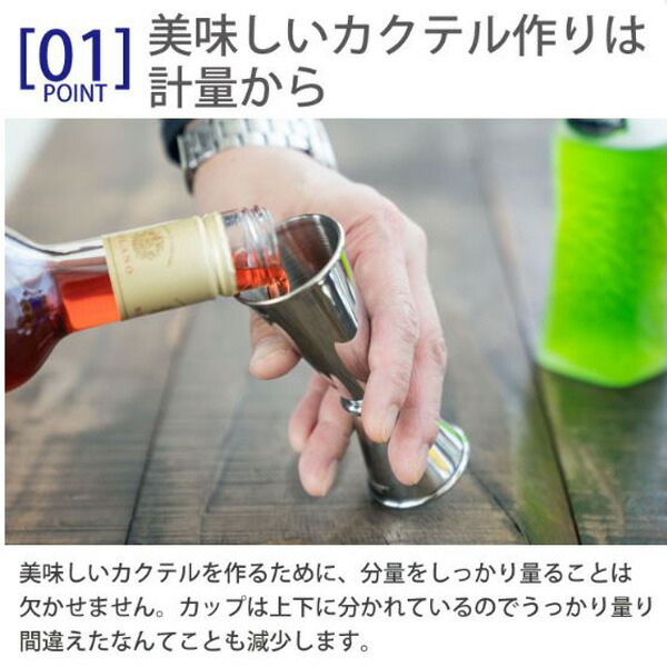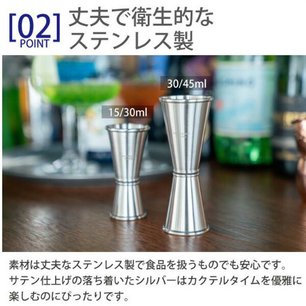 カクテル作りの計量に欠かせないスタンダード メジャーカップ。リキュールやシロップ、レモンジュースなどを量るカクテル作りに欠かせないアイテムです。バーテンダーも使用するプロ仕様。サイズ展開はS(15/30ml)、M(30/45ml)の2つ。