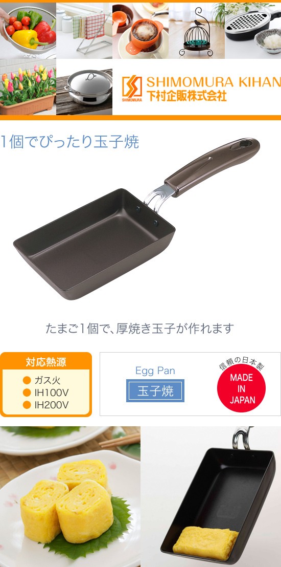 たまご1個で、厚焼き玉子焼きが作れます。お弁当作りにピッタリ!小さくても板厚1.6mmと丈夫な作りです。IH電磁調理器対応。ブラウン色のかわいい玉子焼きです。 |