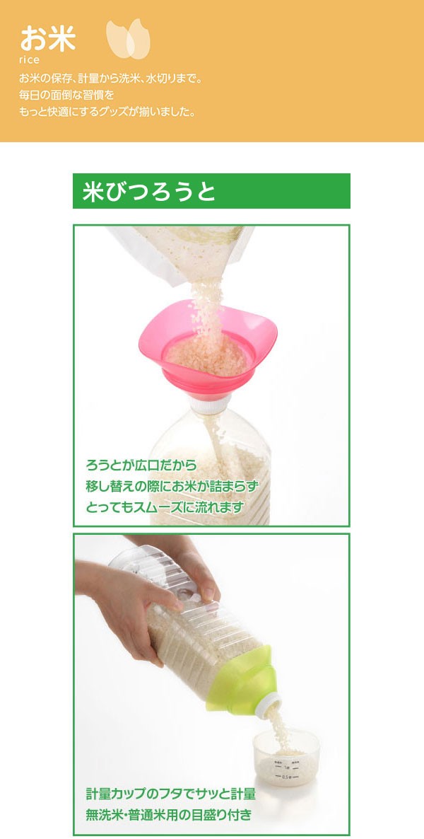 お米をペットボトルに保存している方におすすめ!ペットボトルへのお米の移し替え、冷蔵庫への保存、毎日の計量をもっと手軽に行えます。