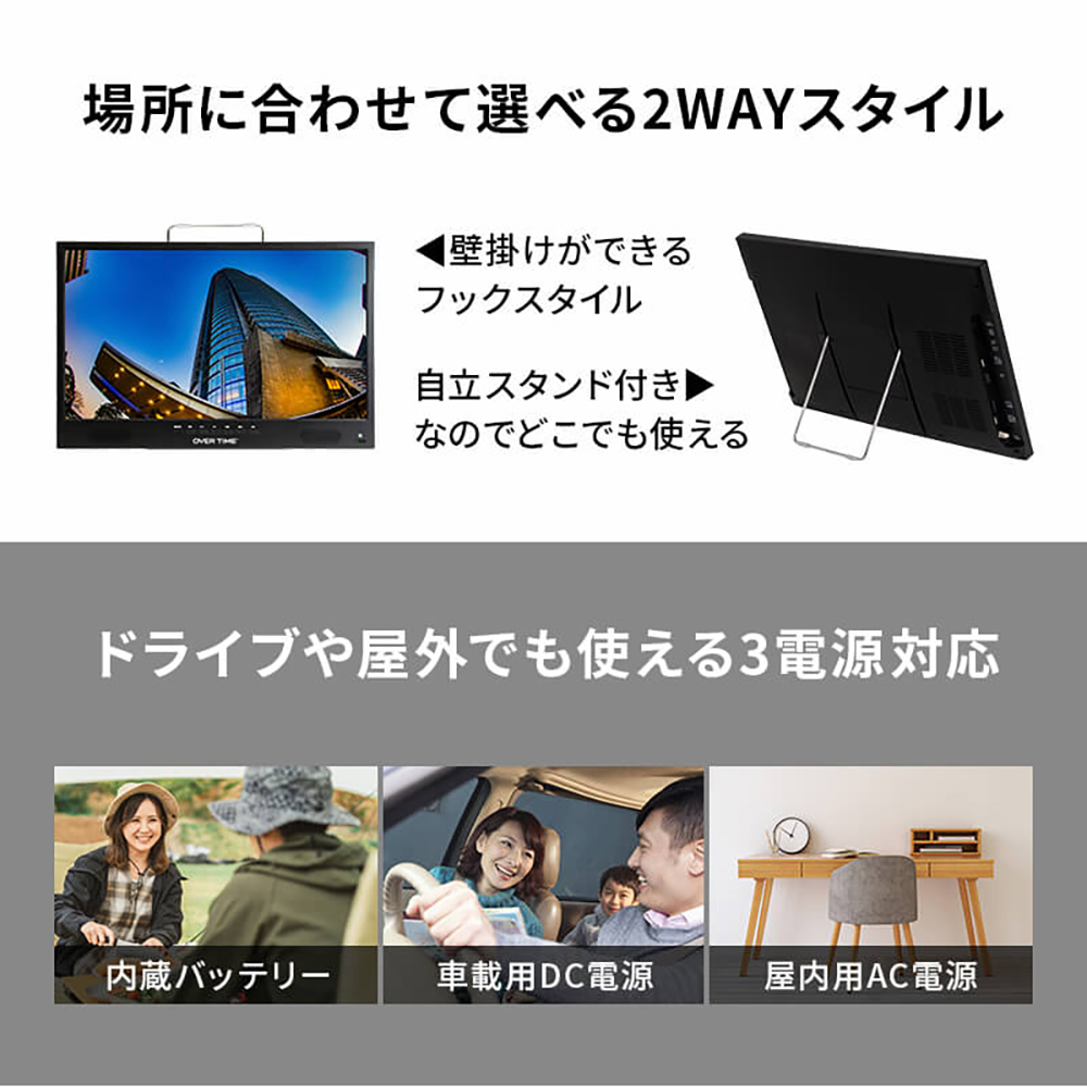 ポータブルテレビ 22インチ フルHD DVDプレーヤー内蔵 録画機能付き 地デジ対応 大画面 バッテリー内蔵 壁掛け対応 OVERTIME OT-TVD22TE