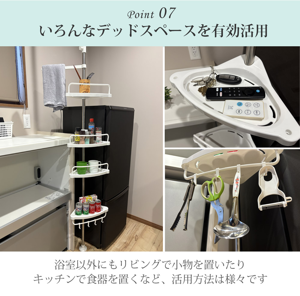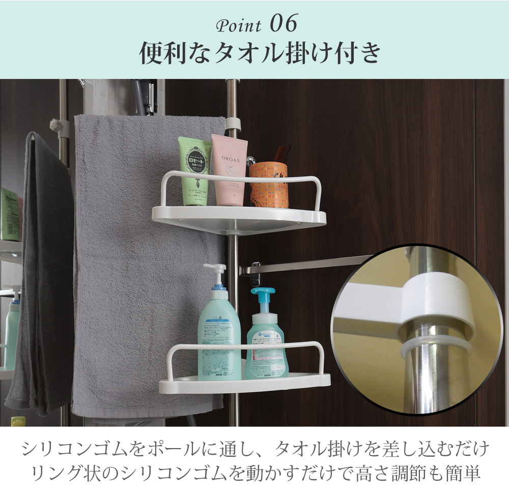 コーナーラックを使用すれば洗面所や浴室内のアイテムを省スペースでキレイに収納することが出来ます!