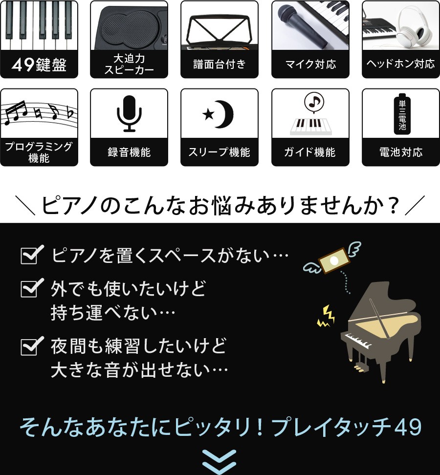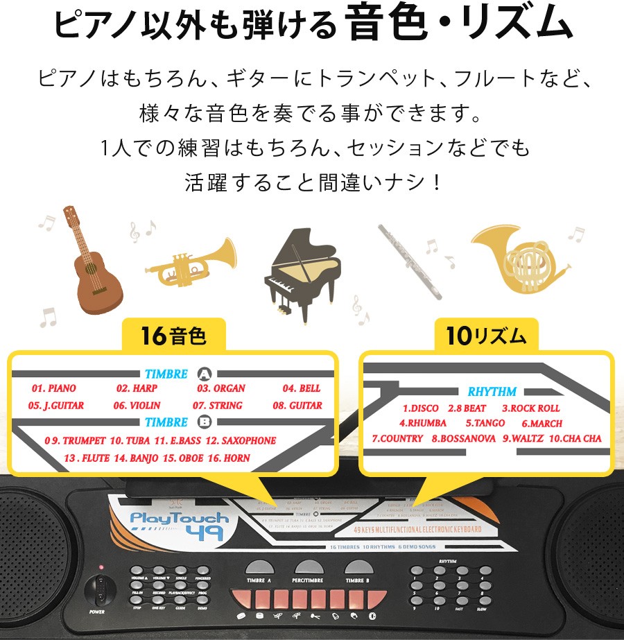 (再入荷) 電子キーボード 電子ピアノ キーボード 49鍵盤 49キー PlayTouch49 楽器 初心者 入門用にも 本格派 和音伴奏 SunRuck サンルック SR-DP02 ブラック