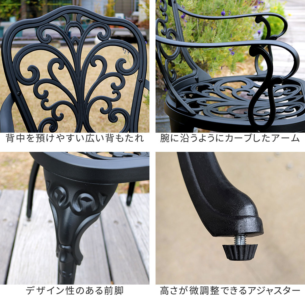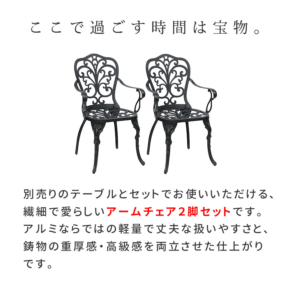 ガーデンチェア 2P 2脚セット アイアン 黒 アルミ 鋳物 おしゃれ クラシック アンティーク 高品質 トルペ マットブラック 洋風 屋外 室内 庭 BKS-C5289-2P